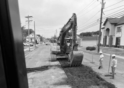 Colossale Siteworks partnered with the Town of Plainville to deliver full-depth roadway reconstruction and drainage upgrades along over half a mile of Whiting Street. The project included the complete removal of historic trolley tracks—the last known stretch in the area—followed by full mill and pave, ADA-compliant sidewalk improvements, updated driveway aprons, and minor traffic signal modifications.